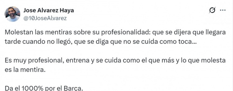Jose Alvarez Haya社媒写说念:“漫骂亚马尔作事格调的谣喙令东说念主恼火——他明明莫得迟到,却被传迟到,还被说疏于自我科罚。”