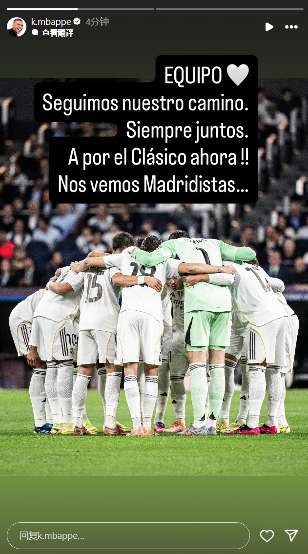姆巴佩社媒晒照:咱们耐久互助一致,国度德比继续加油!