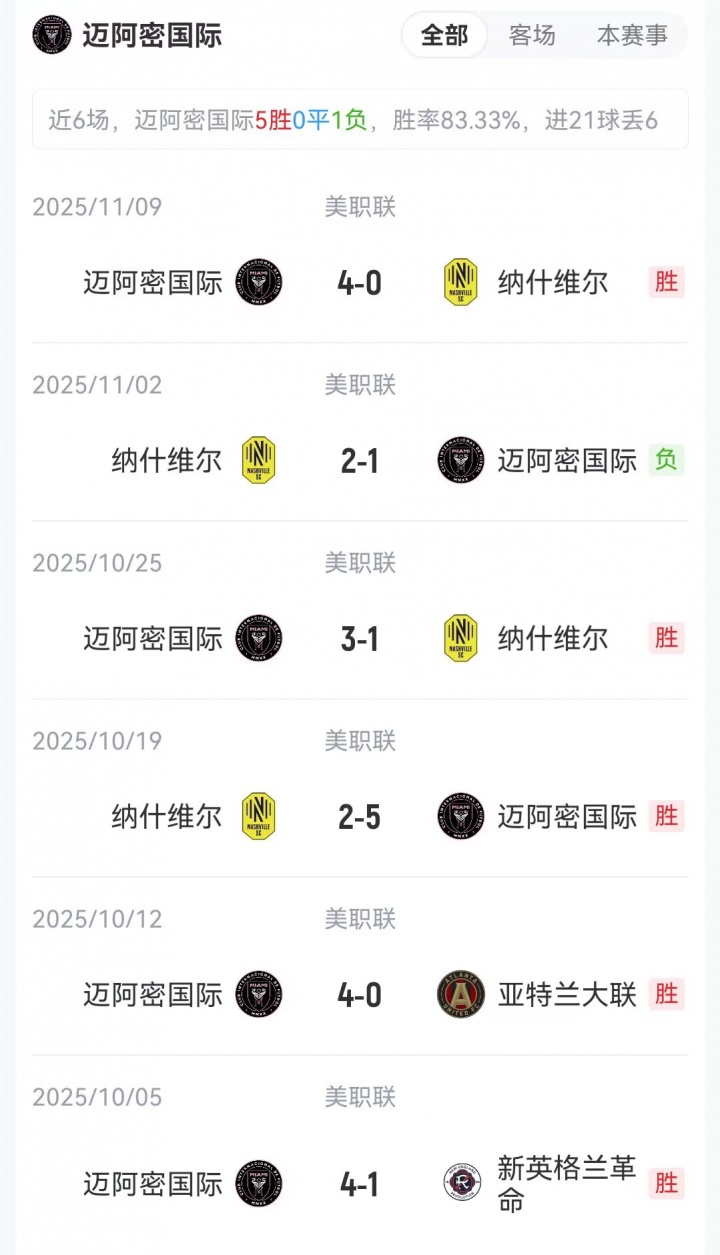迈阿密海外首发:34-诺沃、57-韦甘特、37-法尔肯、5-布斯克茨、32-阿伦、18-阿尔巴、24-西尔维蒂、7-德保罗、11-B·罗德里格斯、10-梅西、21-阿连德