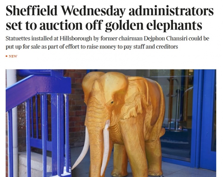泰晤士:谢周三诡计拍卖希尔斯堡球场的标识性金象,以筹集资金