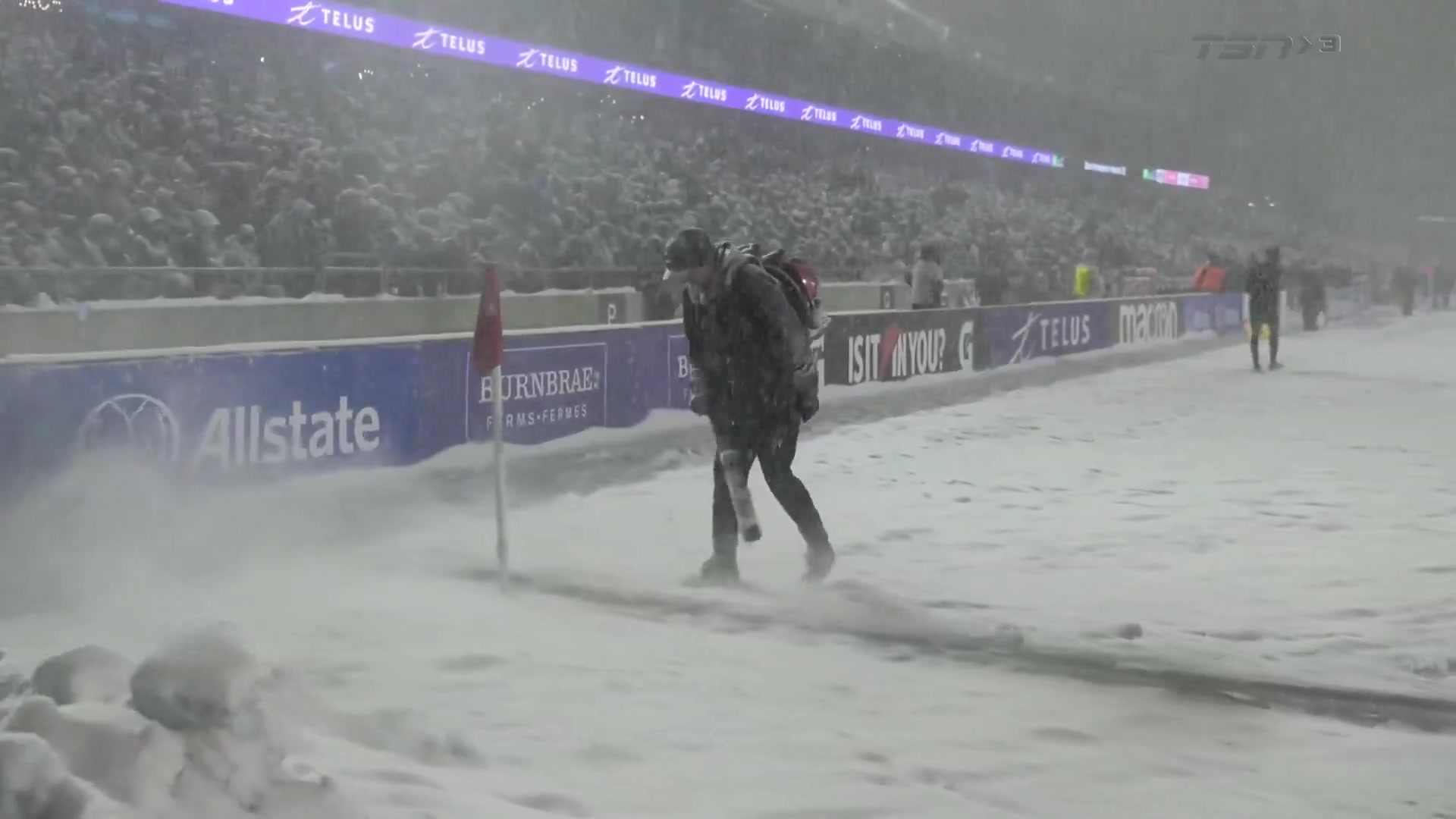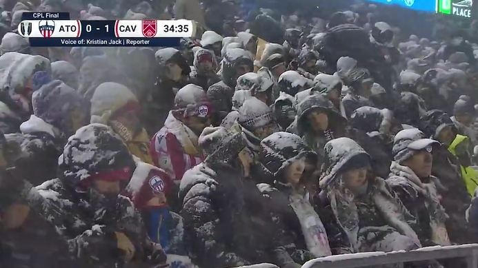 踢雪球!加拿大联赛决赛暴雪中举行,漫天飘雪草地全白啥皆看不见