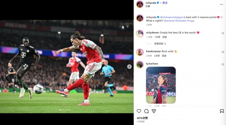 他也在赛后通过社媒晒出我方的助攻短暂照,并配文:“欧冠转头并拿下蹙迫3分,何等精彩的整夜!”