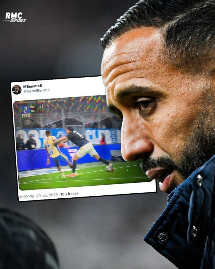派尚禁区昭着被推搡未判点球,马赛总监贝纳蒂亚社媒晒照质疑判罚