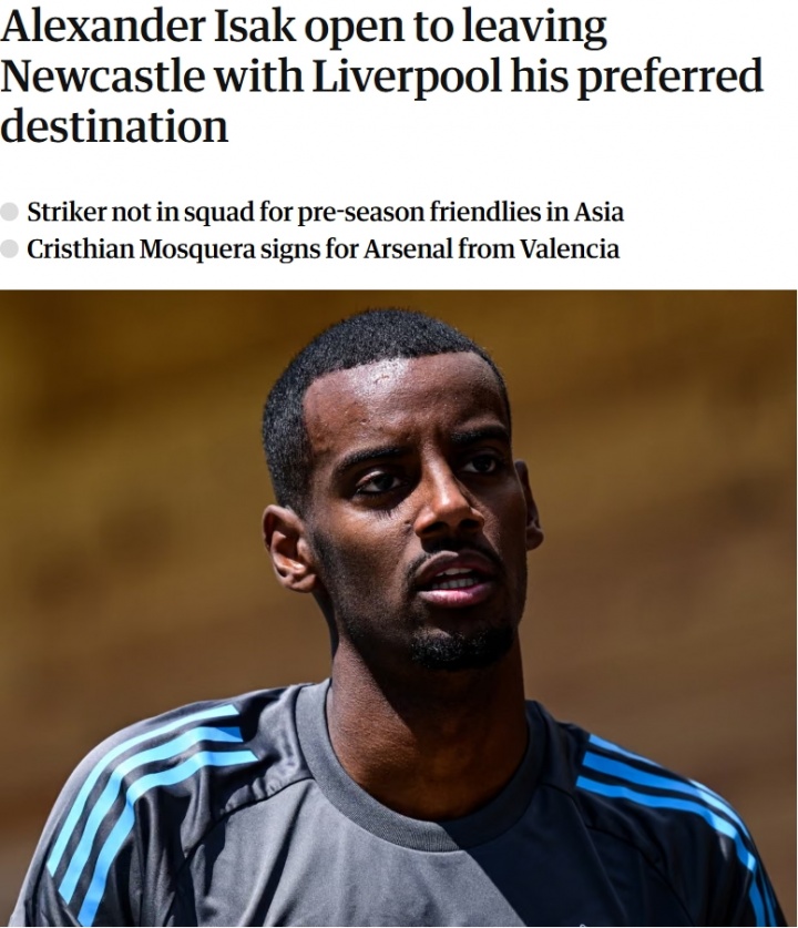 据悉,伊萨克将利物浦视为我方转会的首选野心地。他已拒却随纽卡干预季前赛,计议其他选项。