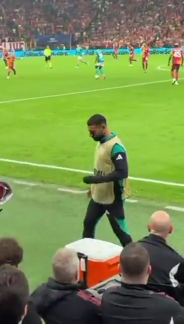 当利物浦控球时,现场55000加拉塔萨雷球迷爆发出雄壮嘘声,萨拉赫被拍到被嘘声烦闷,致使捂住耳朵的画面。