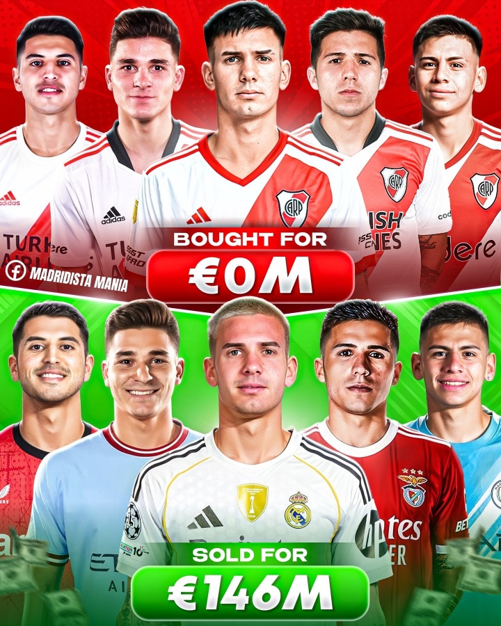 10月11日讯 阿尔瓦雷斯、恩佐、马斯坦托诺、埃切维里和帕拉西奥斯均出自河床青训,他们觉得为河床带来了1.46亿欧的转会费。