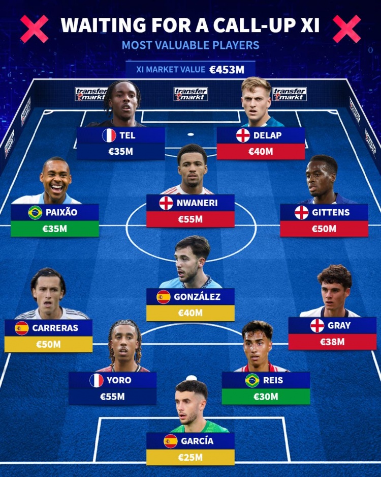 无缘国度队身价最高声势(总价4.53亿欧,指从未入选国度队)