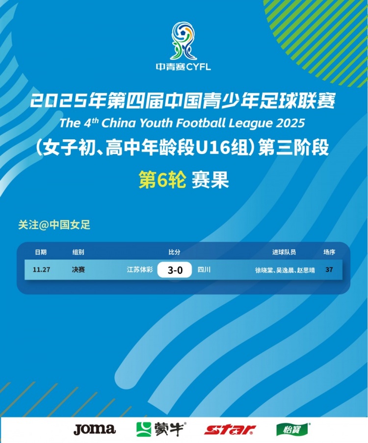 青少年足球联赛女子初、高中年岁段U16组 决赛赛果及最终名次