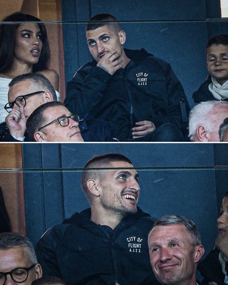 法甲官方社媒晒出像片,维拉蒂回到王子公园球场,现场不雅看老东家巴黎的这场比赛。