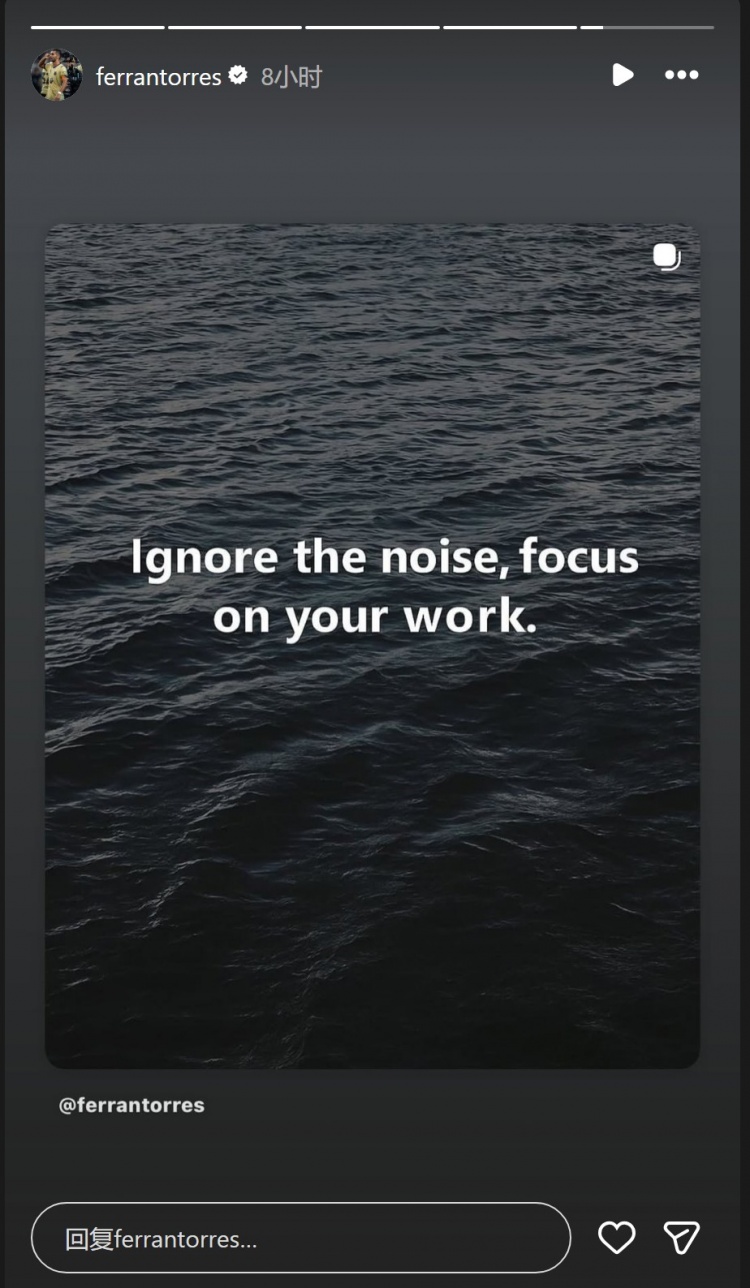 进展被质疑⚽费兰·托雷斯社媒发文:忽略噪音,专注责任